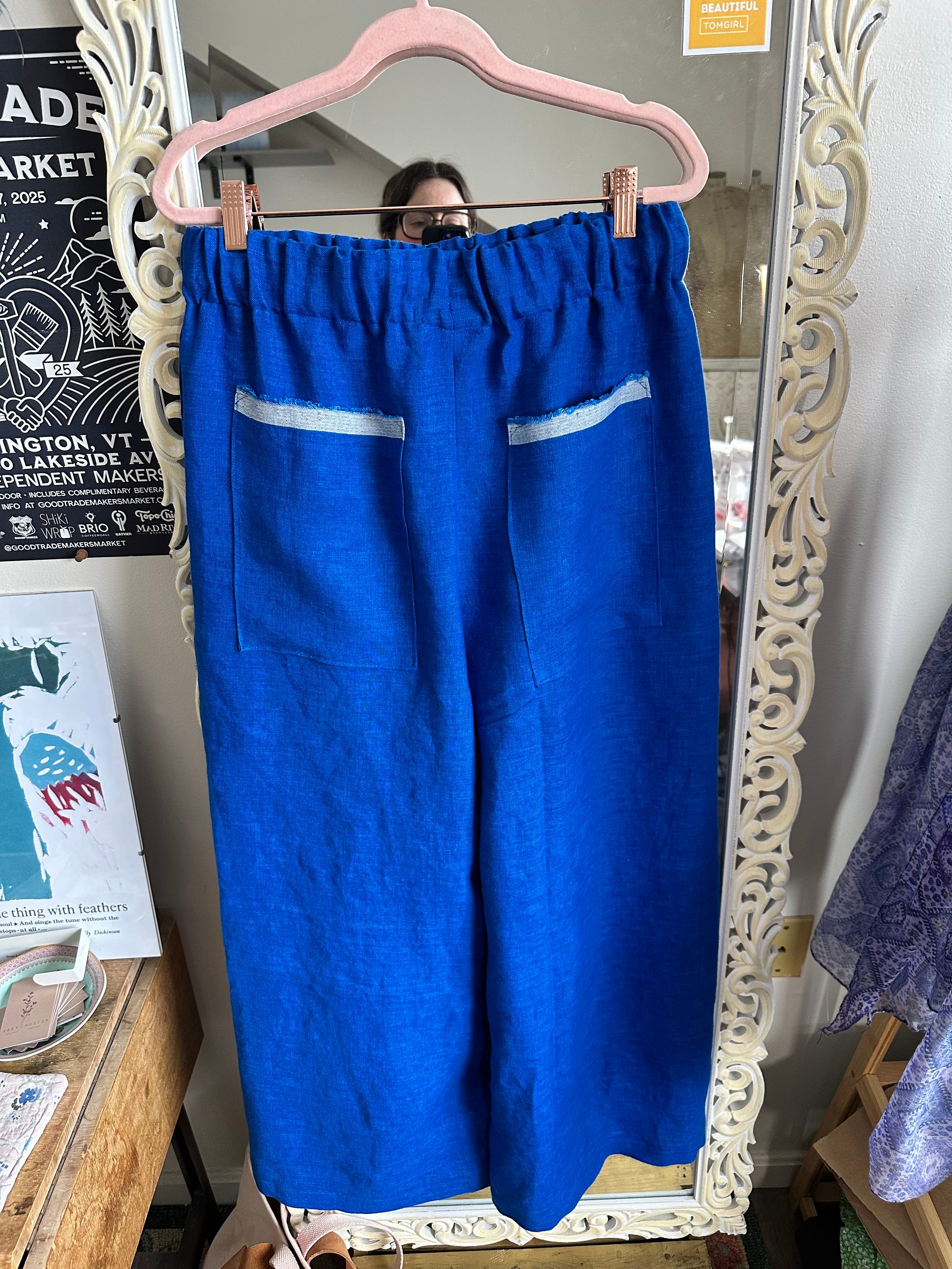 Sizing: meant to fit with plenty of ease and a very high rise. For this elastic waist you want it to fit over your hips so that you can pull them up and down, please make sure elastic waist when stretched is equal to (or greater than) your hip/bum measurement at its widest point. I will include 2 extra inches of elastic in the waistband in case you find that you need a smidge extra ease or want to tighten it. (This requires a sewing machine or access to a tailor or helpful sewing pal…)
